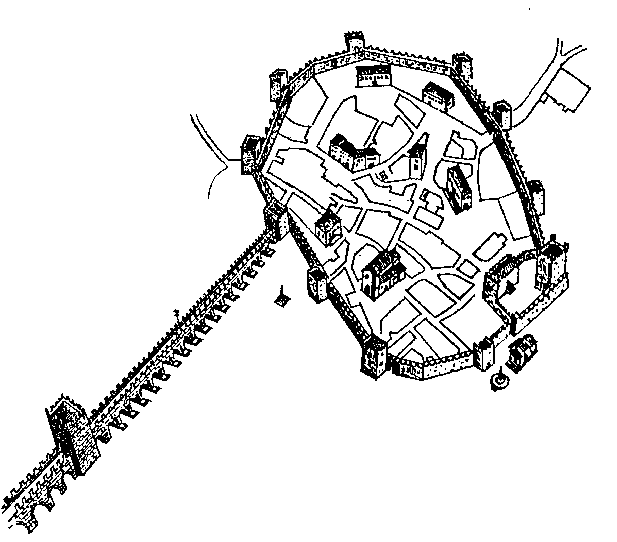 Ponte de Lima ► História O rio que, nascido na fonte do Talarinho, em Ginzo, se torna mais largo e sereno, quando sente próximo o oceano, antes de se espraiar nas férteis veigas, ao cruzar-se com a estrada romana, que noutros tempos foi a principal via da civilização, originou uma ponte e, com esta, deu o nome à povoação que desse cruzamento nasceria: Ponte de Lima. Em 1125, D. Teresa decidiu atribuir o estatuto de vila e sede de município a essa povoação, reconhecendo a sua importância sob o ponto de vista da estratégia militar e económica. Na definição da fisionomia da vila medieval tiveram influência marcante o rio, a ponte e as saídas para as mais importantes vias de comunicação terrestre: para noroeste, na direcção de Ponte da Barca, para sudeste, na direcção de Braga, e para sudoeste, na direcção da foz do Lima. ![]() A ponte romana, já em ruínas, foi substituída por outra, nas últimas décadas do século XIII e primeiros anos do século XIV. Às obras da ponte, seguiu-se, ainda no século XIV, a construção das novas muralhas. Ao seu início, em 3 de Julho de 1354, alude a inscrição de uma lápide que esteve encastoada numa torre junto à entrada da ponte. Em 14 de Junho de 1372, a obra estava pronta, como constava de uma carta enviada ao Rei, cuja cópia existe no arquivo da Câmara de Ponte de Lima. A ligação da vila com o exterior fazia-se através de seis portas, cada uma delas defendida por uma torre. Mas havia ainda três torres situadas na parte mais alta da cerca, que não estavam junto de qualquer porta de comunicação com o exterior mas eram necessárias para garantir a defesa do longo troço da muralha. Tinha esta um perímetro que se pode considerar muito amplo para a época em que foi construída.